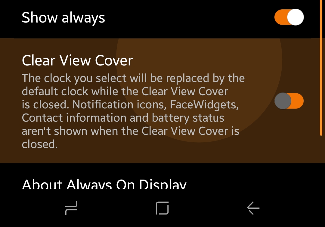 Samsung s8 clear view standing cover settings.