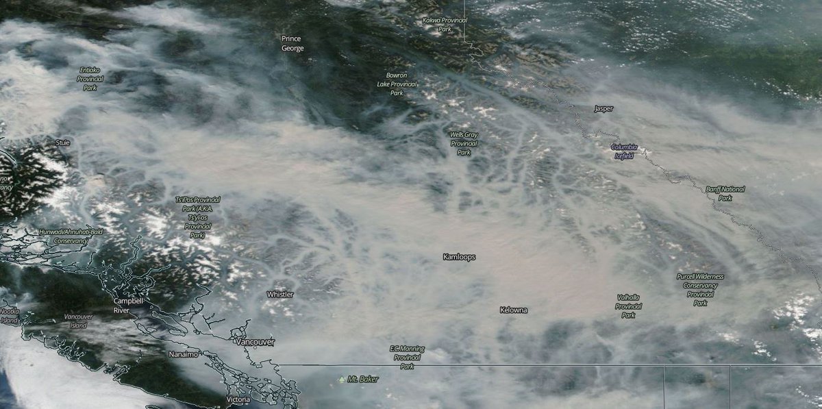 Satellite imagery from nasa shows how the smoke is flowing up the pacific coast and impacting b c s valleys.
